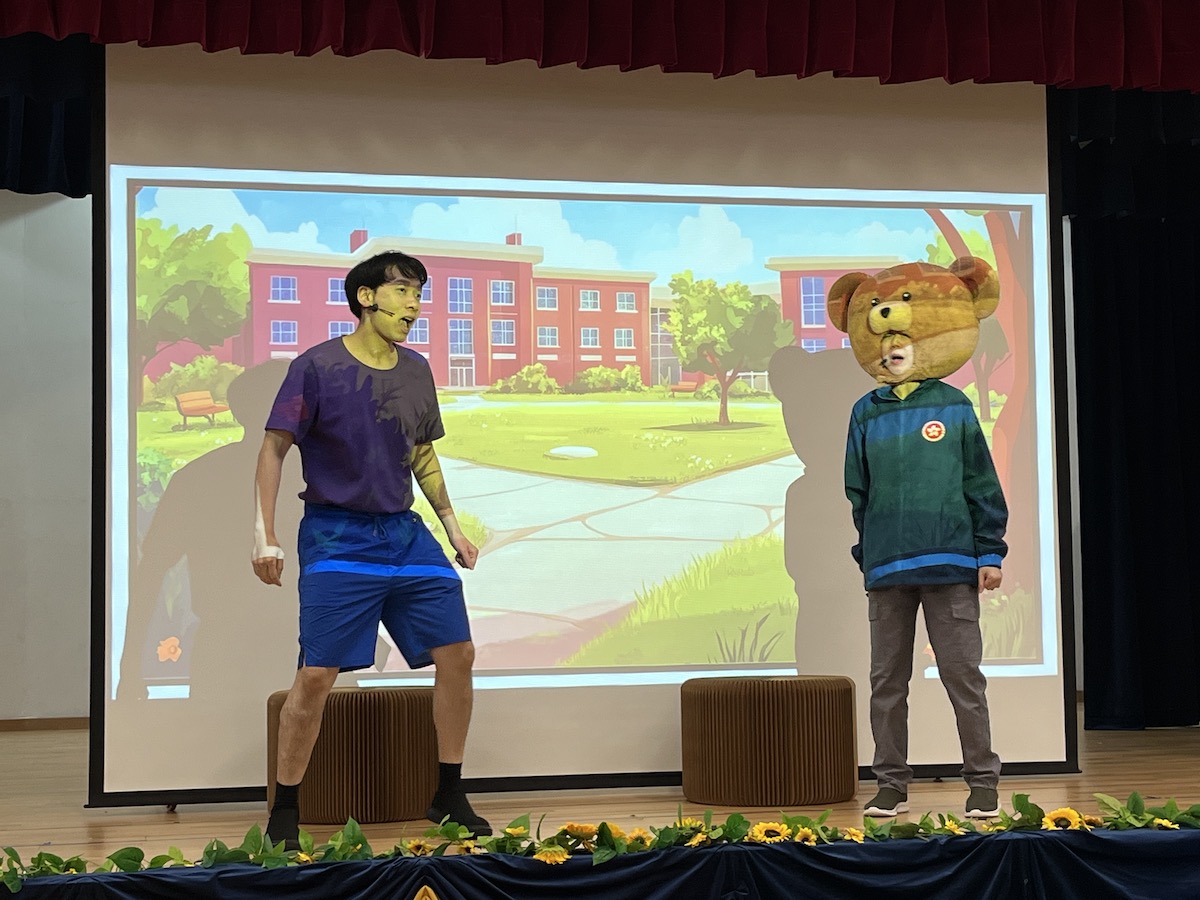 國家安全校園互動劇場《校園食神大賽》由專業劇團透過《安仔與熊仔》活潑生動的故事和互動形式向小學生進行國家安全教育,提升學生主動自覺維護國家安全的意識。同時將小學生日常生活可能遇到的情境融入劇情,並加入互動元素,讓學生可在輕鬆氛圍下認識國家安全和守法的重要概念。