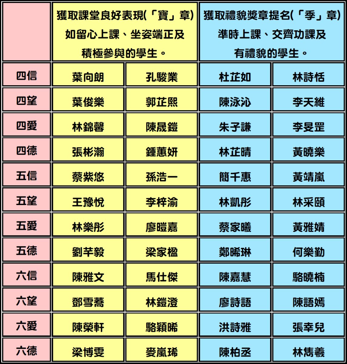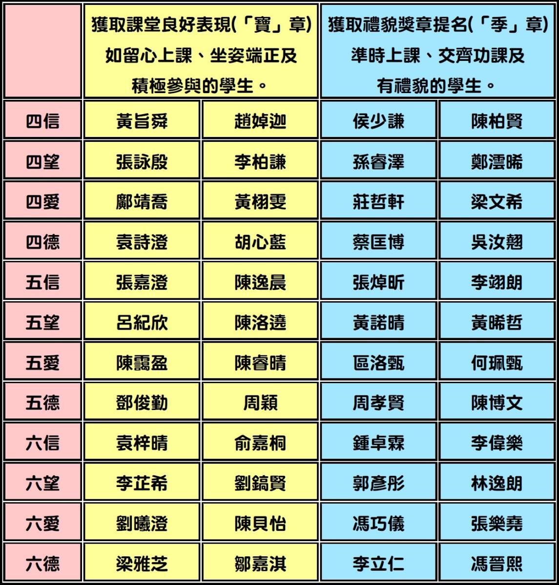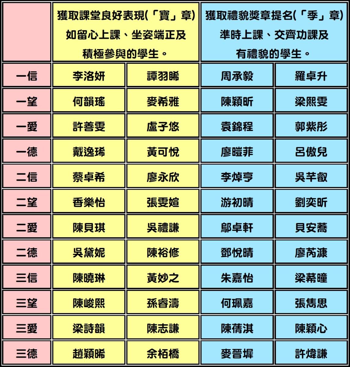 一至三年級第一期獲獎學生名單(2025年9月至2026年1月)