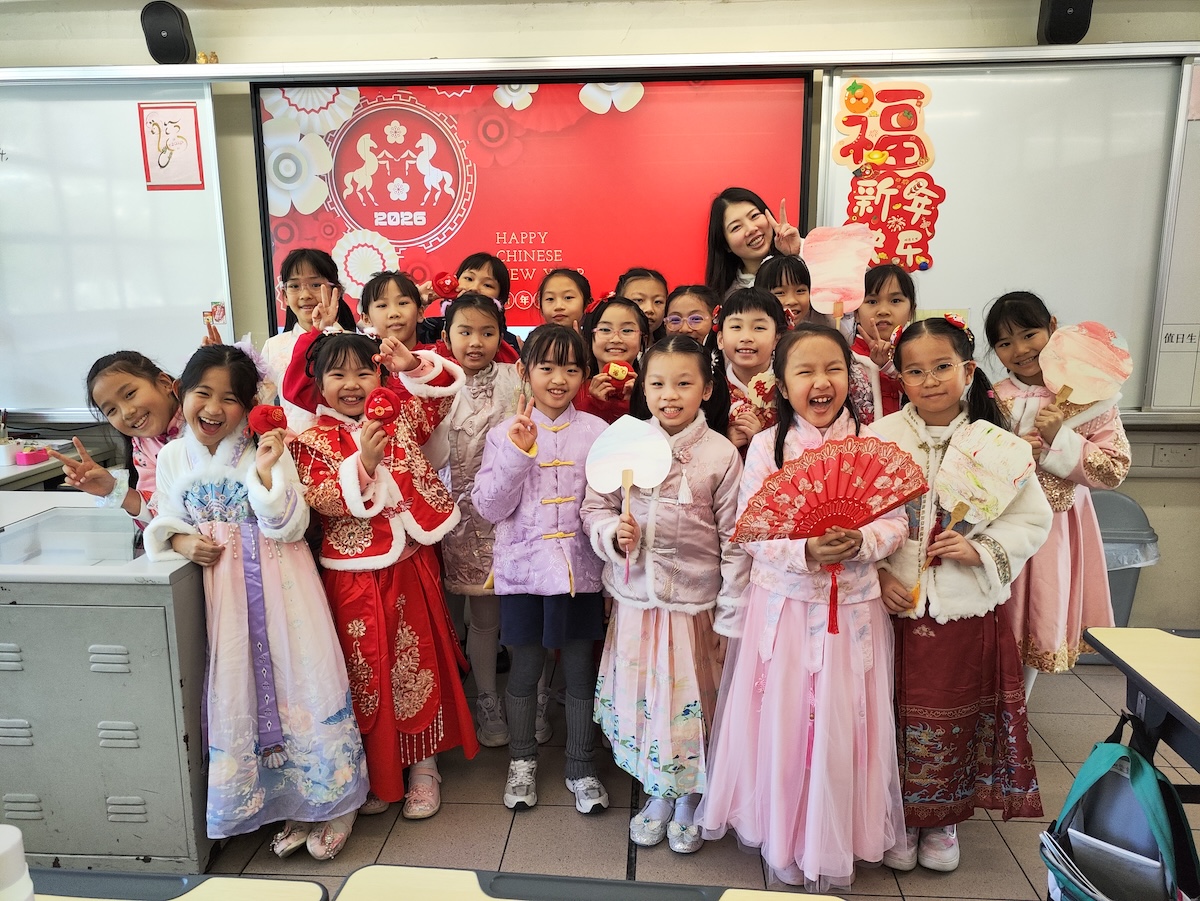 於2026年2月13日本校舉行了「中華文化日」,當天師生們共同參與舞獅表演、皮影戲、豐有中華文化的攤位活動,並一起品嚐美味的傳統年節食品。同學們穿著喜氣唐裝,在互動中融洽無間,沉浸於喜慶熱鬧的氛圍裡,每個人都盡情享受這難忘的時光。這場盛會不僅讓大家玩得開心盡興,更在歡樂中傳承了中華文化,凝聚了校園的情感。