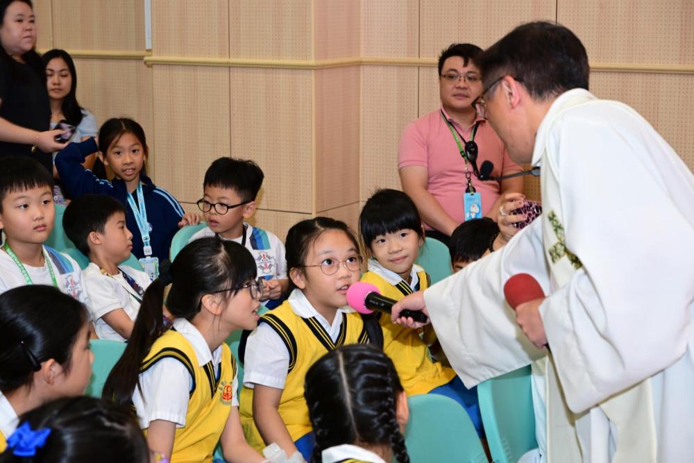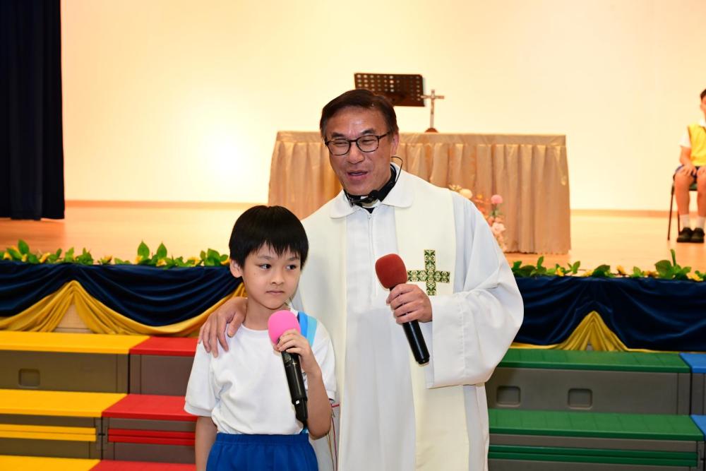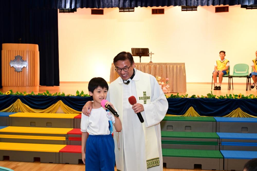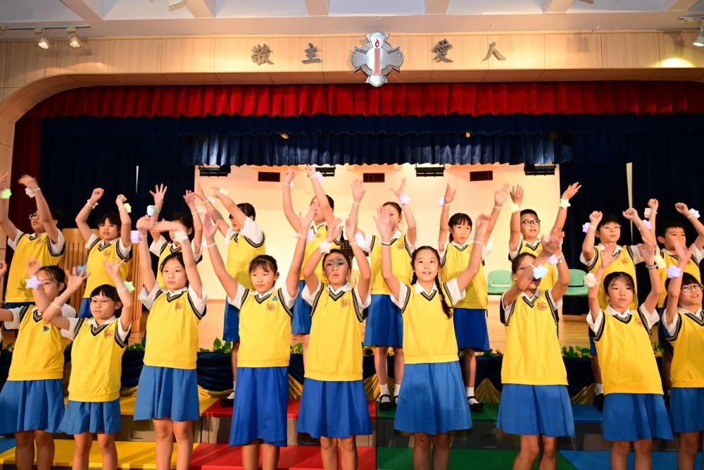 廖神父提醒大家,在新學年中要謙卑自守,敬主愛人,並以真理與愛作為生活的指引,成為耶穌的見證者。祈禱會最後以本年度 Action Song《跟主天際飛》作結,全校師生齊心合唱,舞蹈、歌詞和旋律簡單易學,學生投入演出,場面熱烈感人。大家立志願意跟隨天主,在學習與生活中實踐信仰與愛德。